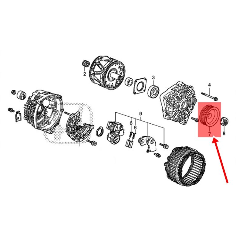 OBS: NÃO VEM O ALTERNADOR COMPLETO, SOMENTE A POLIA GRIFADA EM VERMELHO